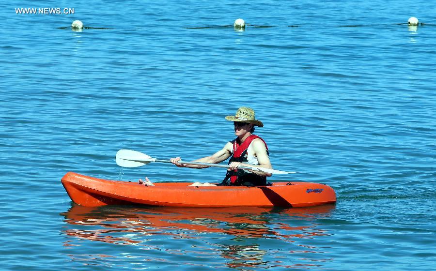 A man rows a canoe in Nadi, Fiji, June 18, 2014. Nadi is located on the west of the island Viti Levu in Fiji. (Xinhua/Li Peng)