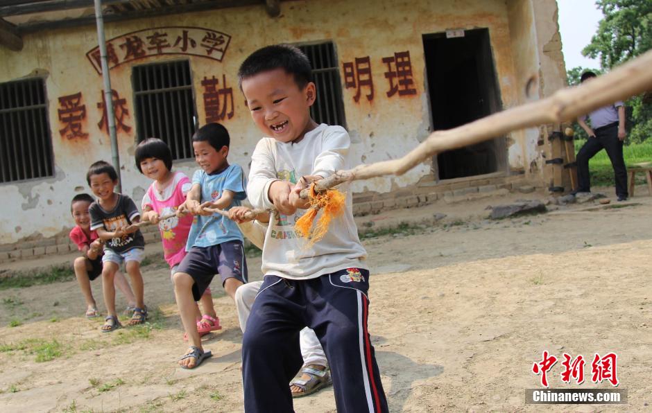 The pupils are playing tug-of-war. [Photo / Chinanews.com]