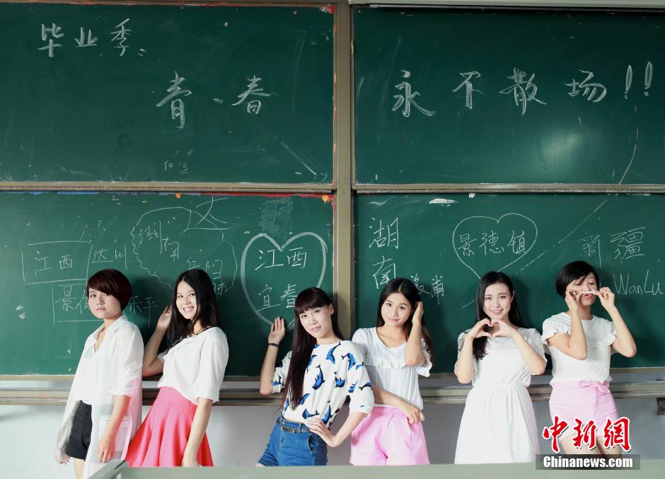 Graduates take photos in Sichuan University of Arts and Science, June 17, 2014. (Chinanews.com/Wan Yanming)