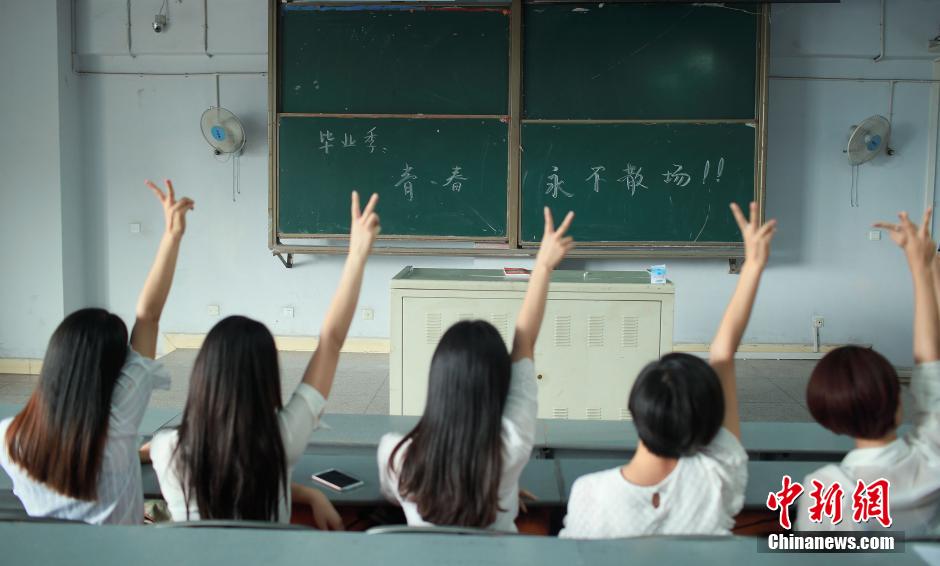 | Graduates take photos in Sichuan University of Arts and Science, June 17, 2014. (Chinanews.com/Wan Yanming) |