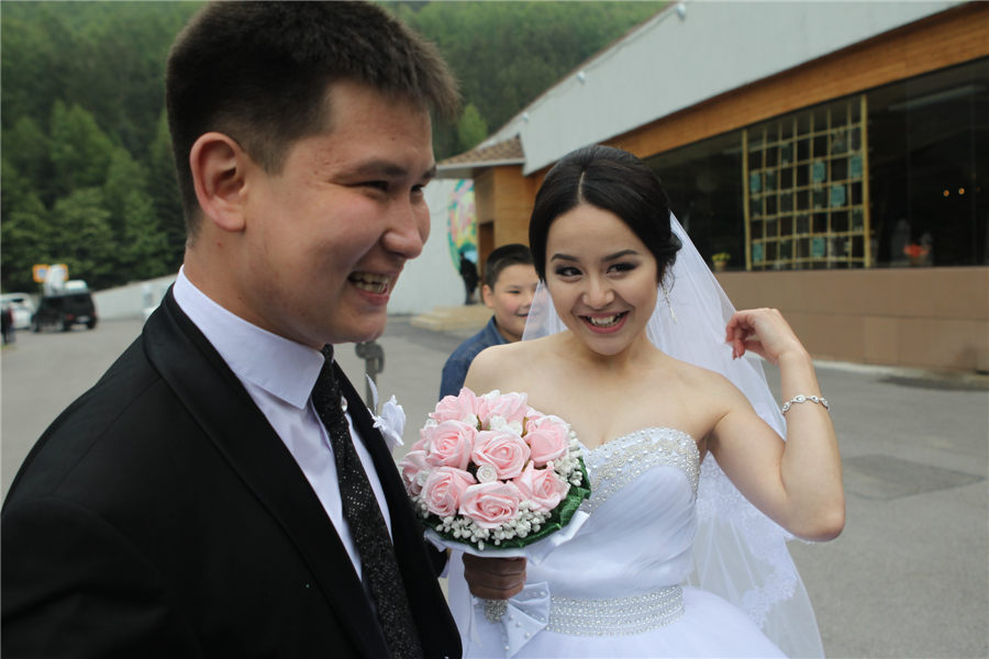 A couple weds in Kazakhstan's former capital Alma-Ata. (China Daily/Zou Hong)