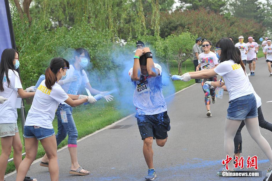 More than 20,000 Chinese and foreign runners are participating the second Beijing Color Run, which is also known as the Happiest 5K on the Planet. (xinhuanet photo/Chinanews.com)
