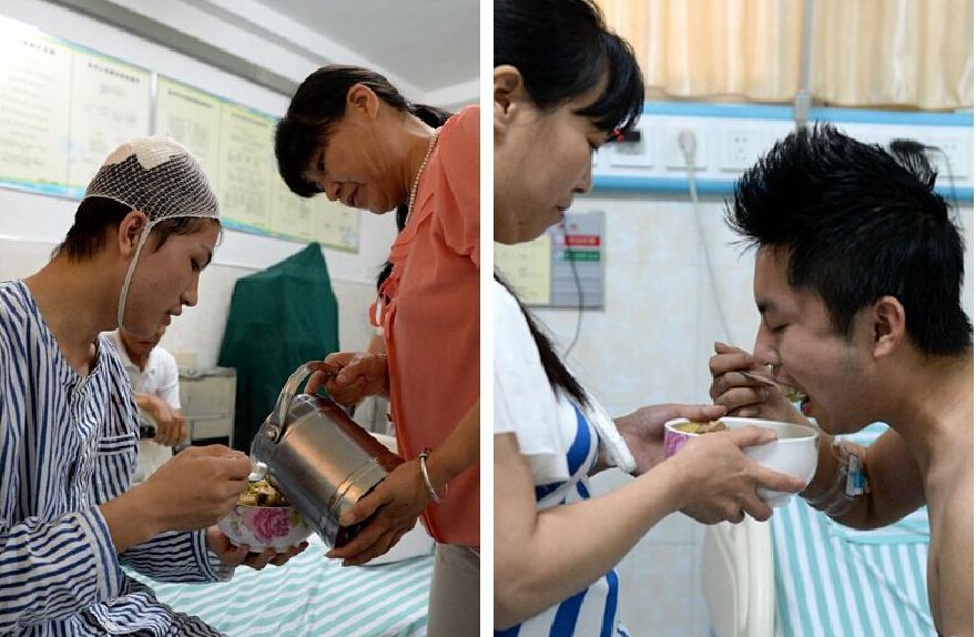 "Good Samaritans" Liu Yanbing and Yi Zhengyong are still recovering from their injuries. Both Liu and Yi have stitches taken out. They are restoring agility to their limbs and can get out of bed for a short time but are still very weak and need further treatment.