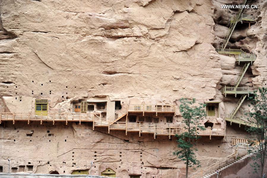 Photo taken on July 17, 2013 shows the Bingling Temple Grottoes in northwest China's Gansu Province. Bingling Temple Grottoes, filled with Buddhist statues, stupas and murals, were a work in progress between the 4th and 10th centuries. The famous ancient Silk Road, which served as a corridor for trade and cultural exchanges between Asia and Europe dating back to 2,000 years ago, was inscribed on the World Heritage list at Doha, capital of Qatar on June 22, 2014. Jointly submitted by China, Kazakhstan and Kyrgyzstan, the application for adding part of the millennium-old trade route to the UNESCO list was approved by the World Heritage Committee which convened its 38th session in Doha. (Xinhua)