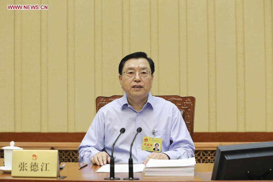 Zhang Dejiang, chairman of the Standing Committee of the National People's Congress (NPC), presides over the 9th meeting of the 12th NPC Standing Committee in Beijing, China, June 23, 2014. (Xinhua/Ding Lin)