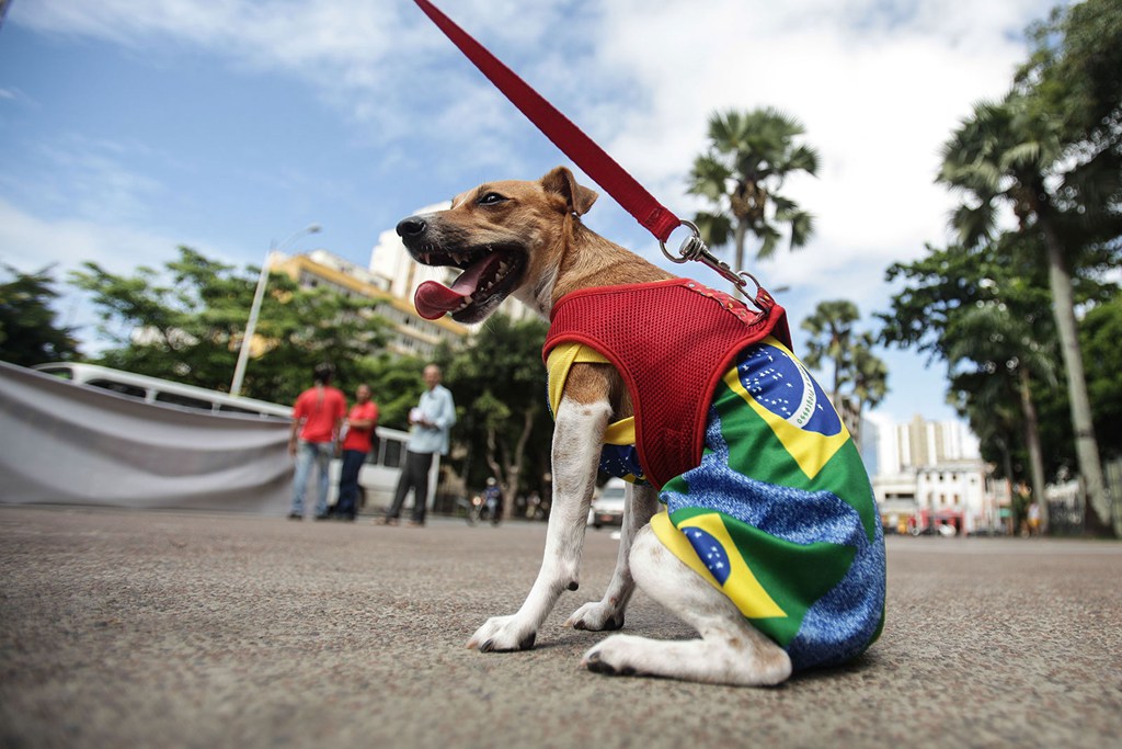 | In the 2014 World Cup, many fans are dressed in animal and mascot costumes to support their favorite teams. (Xinhua photo) |