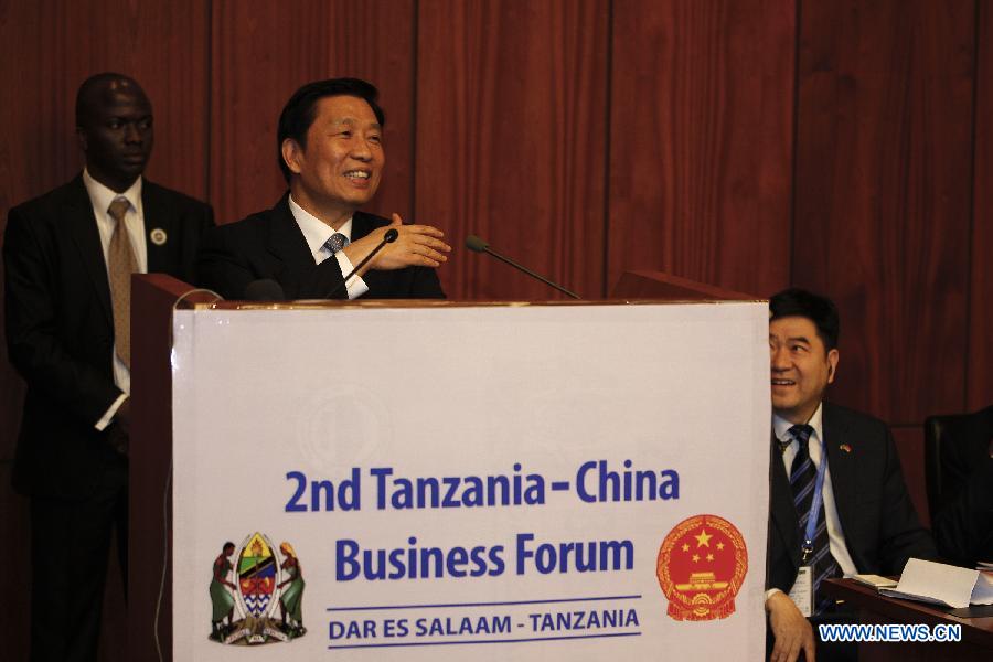 Visiting Chinese Vice President Li Yuanchao (C) speaks at the opening ceremony of the 2nd Tanzania-China Business Forum in Dar es Salaam, Tanzania, June 23, 2014. (Xinhua/Zhou Xiaoxiong)