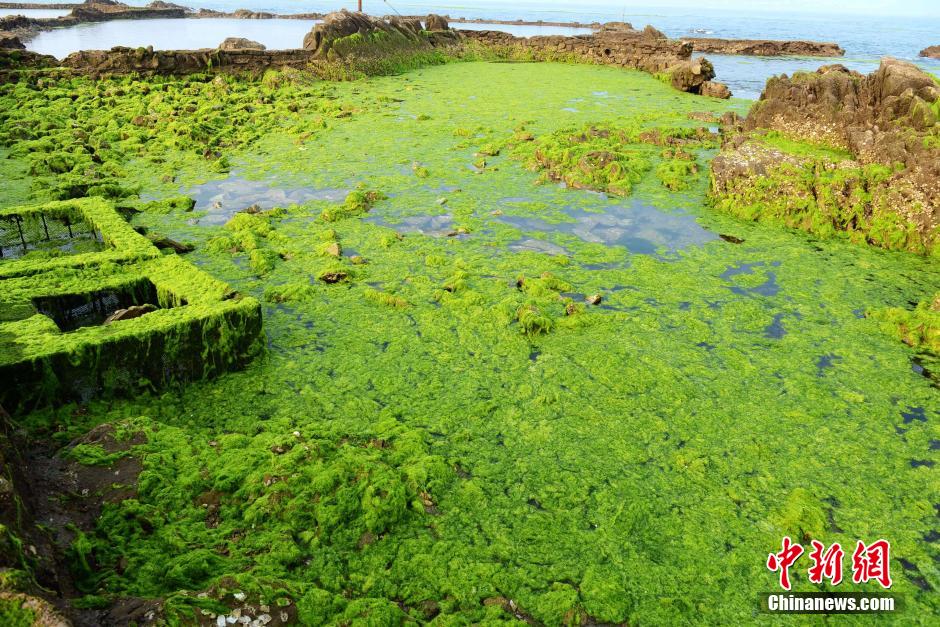 On June 23, large quantities of green algae known as enteromorpha profiera hit the coast of Qingdao, eastern China’s Shandong Province. This is the seventh year since 2008 that green algae have sprouted here. At present, operations are being carried out to remove the green algae. (CNSPHOTO)