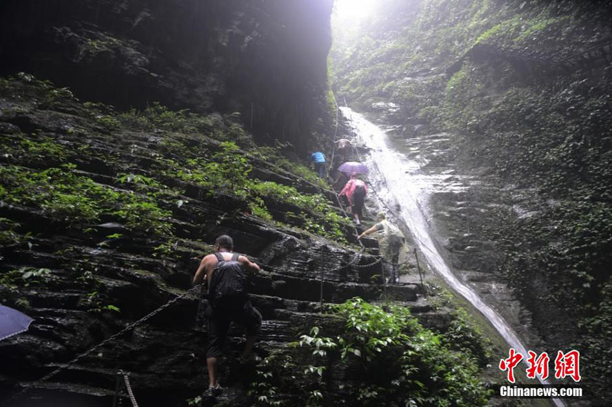 Hundreds of Chinese photographers participate in a photography competition in Zuolongxia, a canyon in the western part of central China’s Hunan province. (China News Service/Yang Huafeng)