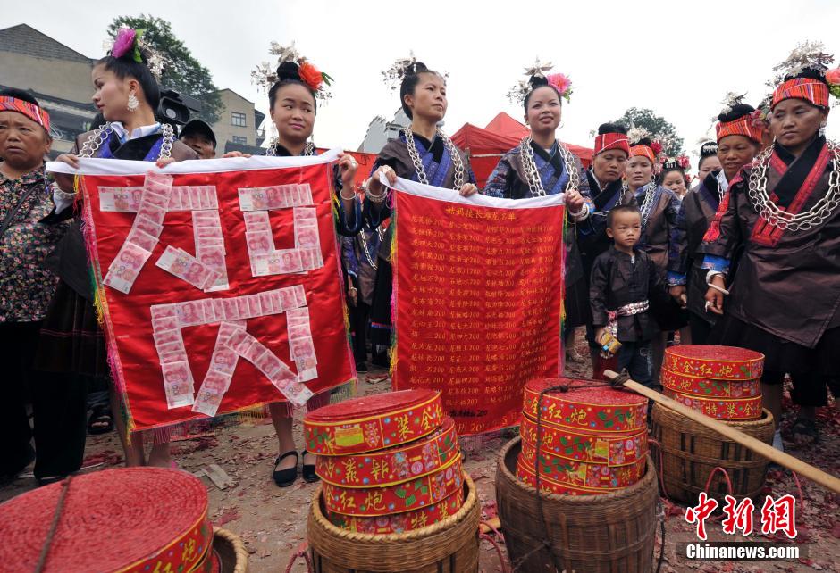 Miao people celebrate the annual Dragon Canoe Festival in Taijiang County, southwest China's Guizhou Province on June 22, 2014. Thousands of Miao people participated in the celebrations. They held the dragon canoe race to pray for a good harvest. The celebration would last for four days and a series of folk activities would be held. With a history of more than 2,000 years, the Dragon Canoe Festival has been listed as a national intangible cultural heritage. (Chinanews/Qiao Qiming)