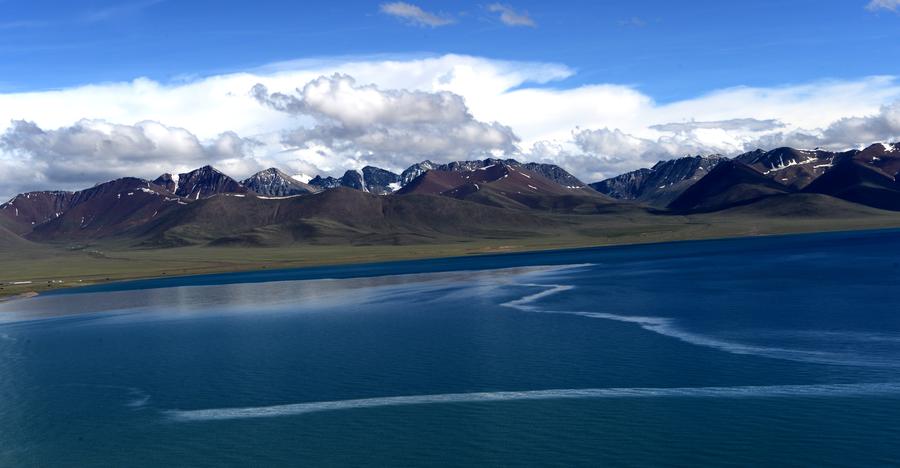 | Photo taken on June 23, 2014 shows the scenery of the Nam Co ("heavenly lake" in Tibetan) in Damxung county, Southwest China's Tibet autonomous region, June 23, 2014. The Nam Co has entered its high season for tourism with the coming of summer.[Photo/Xinhua] |