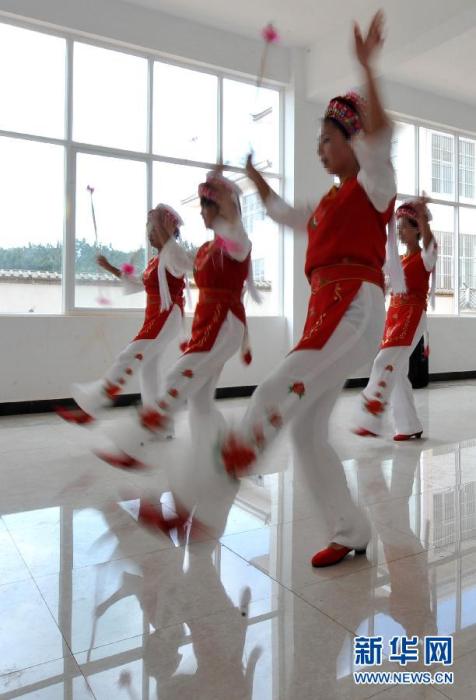 Recovering addicts perform folk dance of Bai ethnic group in a compulsory rehabilitation center in Dali, southwest China's Yunnan Province, June 23, 2014. (Xinhua/Lin Yiguang)