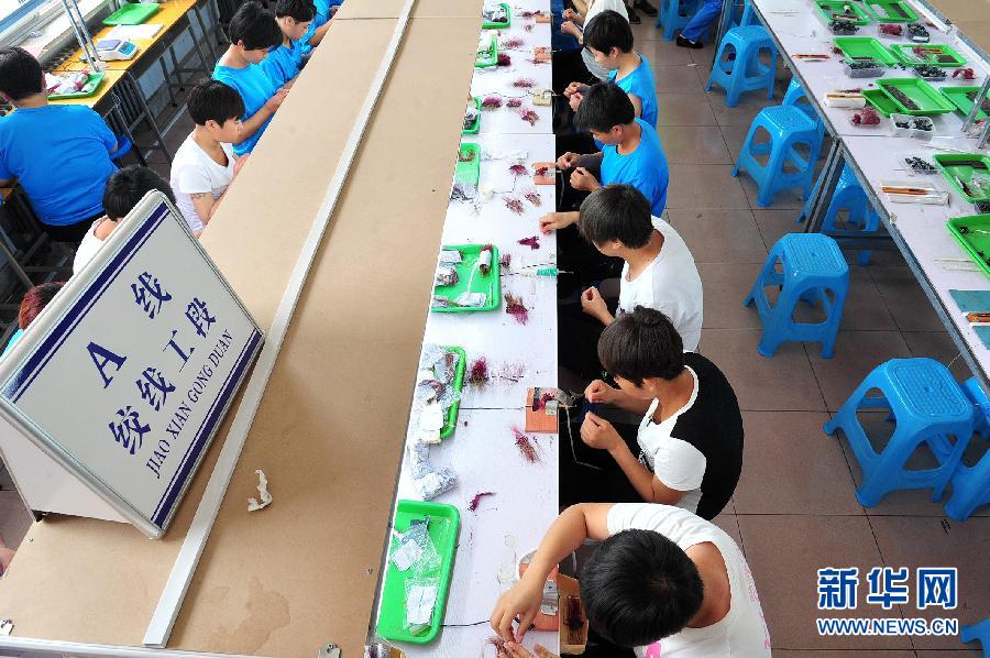 Recovering addicts work at production lines in the third compulsory rehabilitation center, northwest China's Ningxia Hui Autonomous Region, June 24, 2014. (Xinhua/Chen Junqing)