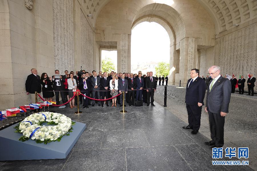 European Council President Herman Van Rompuy speaks furing a ceremony marking the centenary of the outbreak of World War I, in Ypres, Belgium, June 26, 2014. (Xinhua)