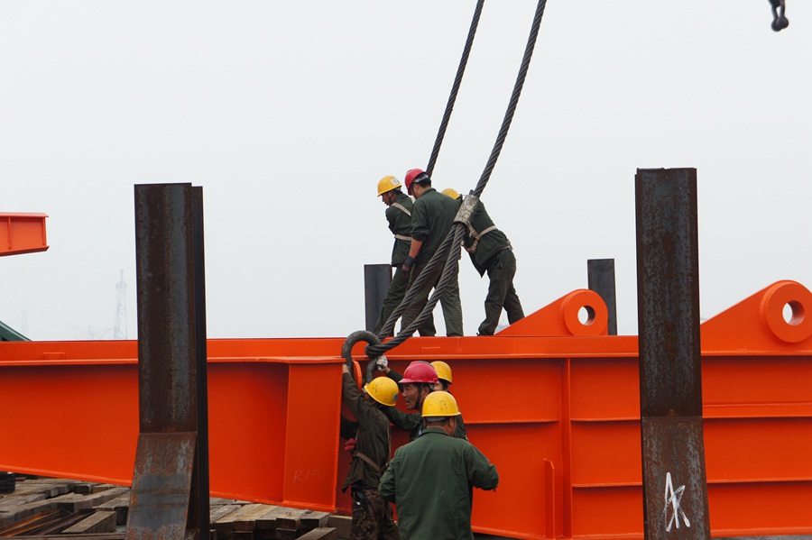 The site scene at the Tianjin Xingang shipbuilding company.(People's Daily Online/Li Xiang)