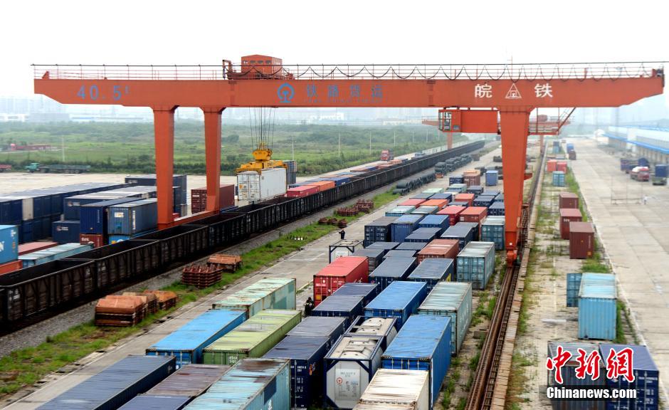 On June 26, the first cargo train along the new Eurasian Continental Bridge sets off from Hefei, central China's Anhui Province. It will cross the Alashankou and arrive in Kazakhstan, Tajikistan and other Central Asian countries in a week, and arrive in Europe in half a month. It signifies that Hefei has the direct cargo train to Central Asia and Europe, and is integrated with the Silk Road economic belt. (CNS Photo)