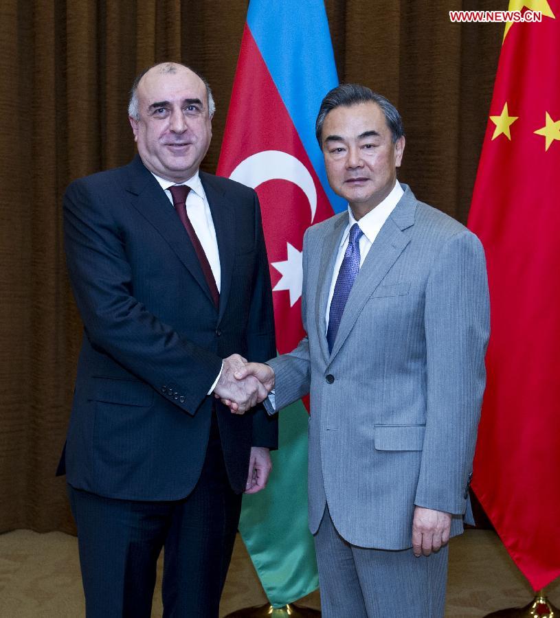 Chinese Foreign Minister Wang Yi (R) meets with Azerbaijan's Foreign Minister Elmar Mammadyarov in Beijing, capital of China, July 1, 2014. (Xinhua/Wang Ye)