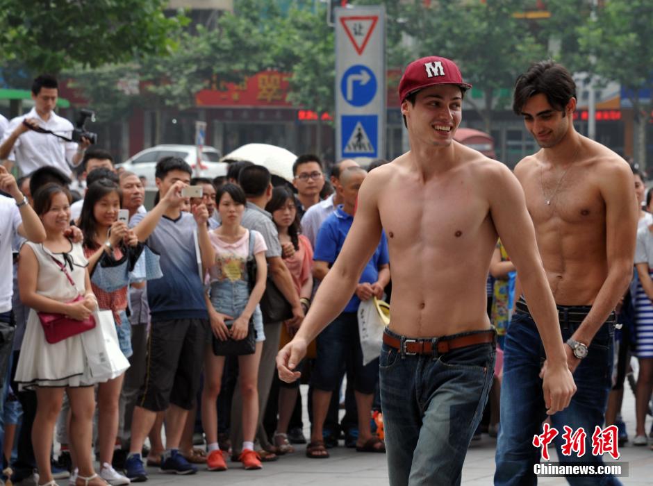 15 sexy international models present a show in the street of Hefei, capital of east China’s Anhui province on June 28, 2014, which attracted many people’s attention. (Photo/CNS)