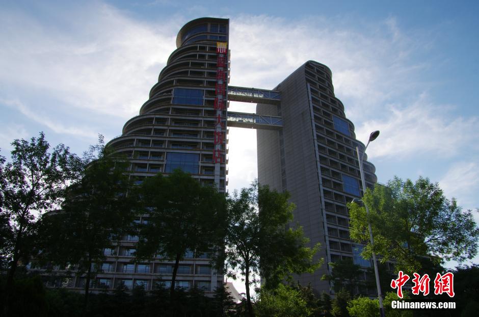 Photo taken on June 28, 2014 shows a hotel shaped like a pair of huge boots in Rizhao city in east China's Shandong province. The local people call it "boot buildings". (Photo/CNS)