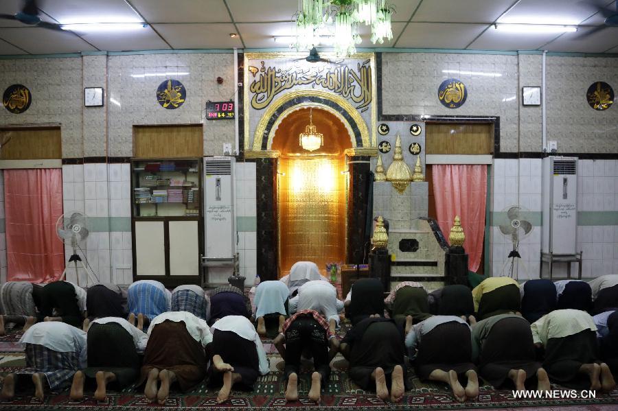 Muslims pray at a mosque during the holy month of Ramadan in Yangon, Myanmar, July 1, 2014. Muslims around the world celebrate Ramadan, the holiest month in the Islamic calendar, in which they abstain from eating, drinking and conducting sexual relations from sunrise to sunset. (Xinhua/U Aung)