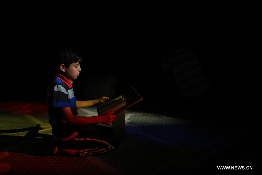A Palestinian boy reads Quran at a Mosque in Gaza City on the third day of the Muslim fasting month of Ramadan, on July 1, 2014. Muslims around the world celebrate Ramadan, the holiest month in the Islamic calendar, in which they abstain from eating, drinking and conducting sexual relations from sunrise to sunset. (Xinhua/Wissam Nassar)