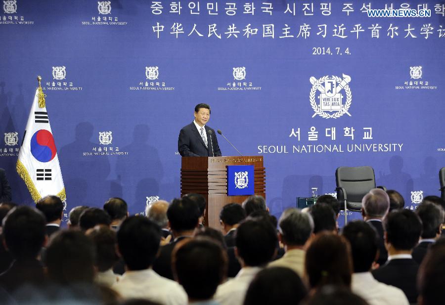 Chinese President Xi Jinping delivers a speech at Seoul National University in Seoul, capital of South Korea, July 4, 2014. (Xinhua/Ding Lin)