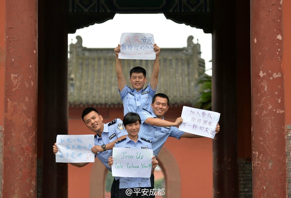 Recruitment promotion pictures posted by Chengdu Public Security Bureau on Sina Weibo, the Chinese equivalent of Twitter. (Photo/Weibo)