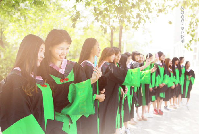 Recently, Shandong Youth University of Political Science released a group of graduation photos to celebrate the 2014 graduation season. The fresh and stylish photos are regarded as new tools to "snatch" students in the enrollment season. (Photo/Shandong Youth University of Political Science)