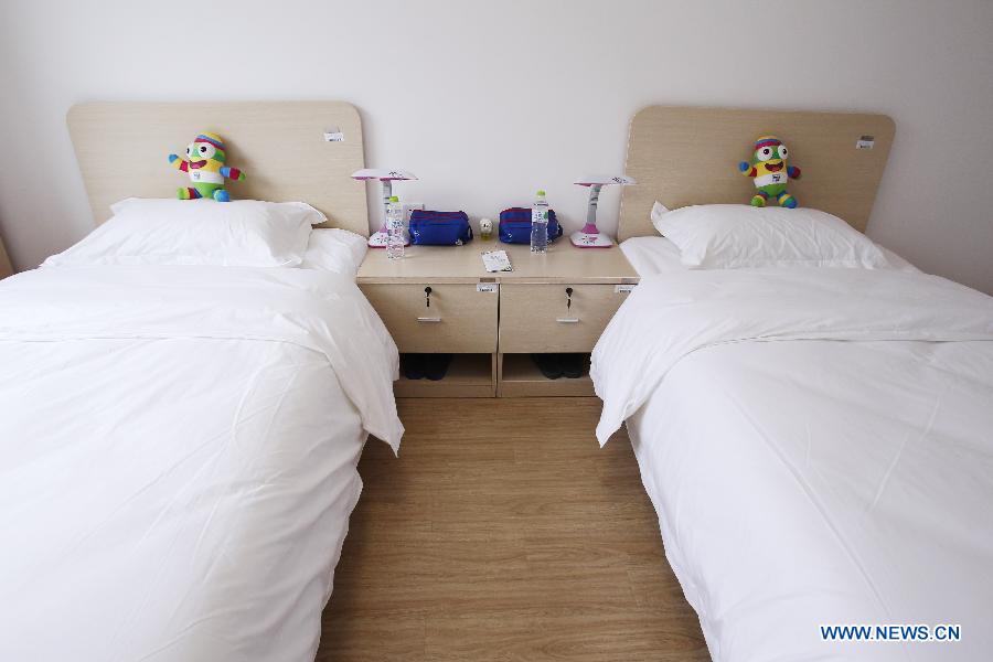Picture taken on July 4, 2014 shows the dormitory in the Youth Olympic Village in Nanjing, capital of east China's Jiangsu Province. The Nanjing 2014 Youth Olympic games will be held from August 16 to 28, attracting 3808 youth athletes from 204 countries and regions. (Xinhua/Gao Jing)