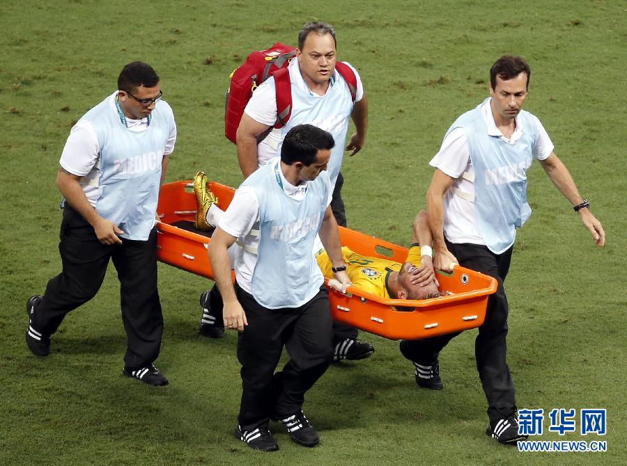 Brazil have suffered a huge setback as team doctor confirmed star man Neymar suffered a broken vertebra and is out of the World Cup after he was stretchered off during the quarterfinal defeat of Colombia. (Photo/Xinhua)