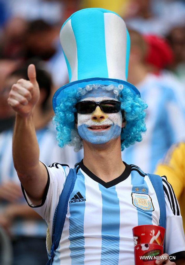 An Argentina's fan cheers prior to a quarter-finals match between Argentina and Belgium of 2014 FIFA World Cup at the Estadio Nacional Stadium in Brasilia, Brazil, on July 5, 2014.(Xinhua/Li Ming)