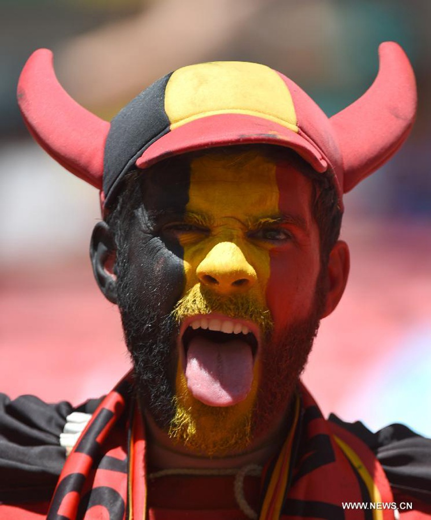 A Belgium's fan poses before a quarter-finals match between Argentina and Belgium of 2014 FIFA World Cup at the Estadio Nacional Stadium in Brasilia, Brazil, on July 5, 2014.(Xinhua/Liu Dawei)