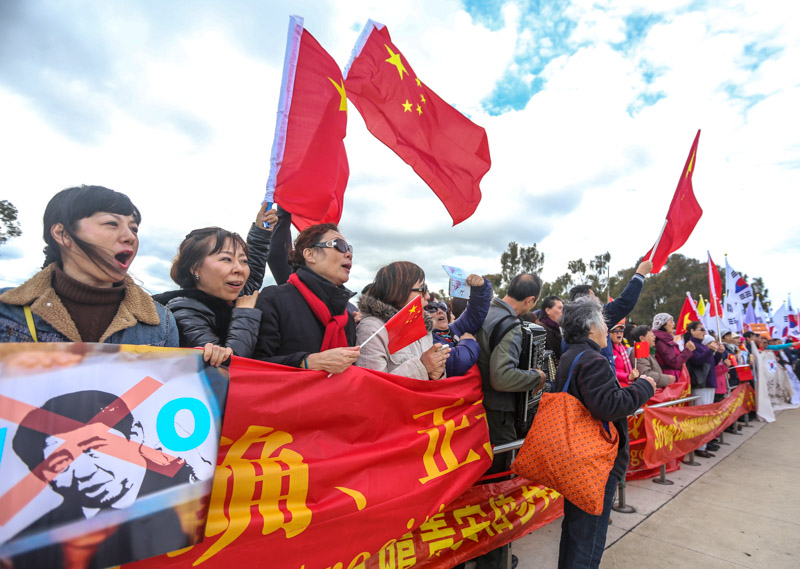 Protesters from Sydney and Canberra’s Chinese and Korean Communities outside the Parliament House in Canberra_ Australia (People's Daily Online/Li Yiming)