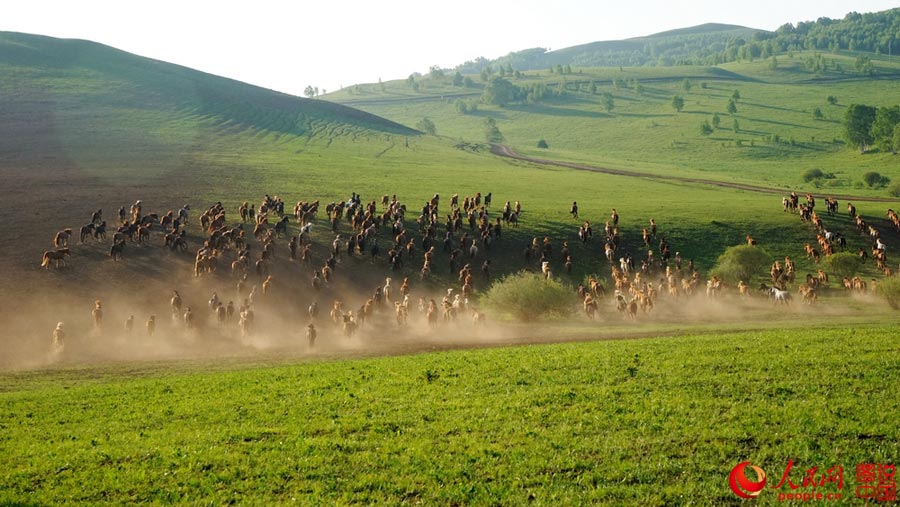 | Photo shows the amazing spring scenery of Bashang Prairie, located in northwest Hebei province. (Photo/People's Daily Online) |
