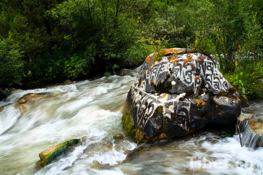 Stones with the six syllable Mantra are called holy stones, which could be seen everywhere in Tibet. The stones express prays for blessings. (Tibet.cn/ Zou Shizhen)