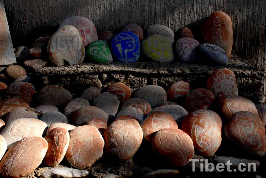 Stones with the six syllable Mantra are called holy stones, which could be seen everywhere in Tibet. The stones express prays for blessings. (Tibet.cn/ Du Zheng)
