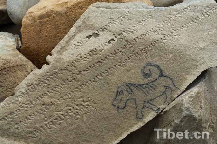 Stones with the six syllable Mantra are called holy stones, which could be seen everywhere in Tibet. The stones express prays for blessings. (Tibet.cn/ Ju Hongmin)