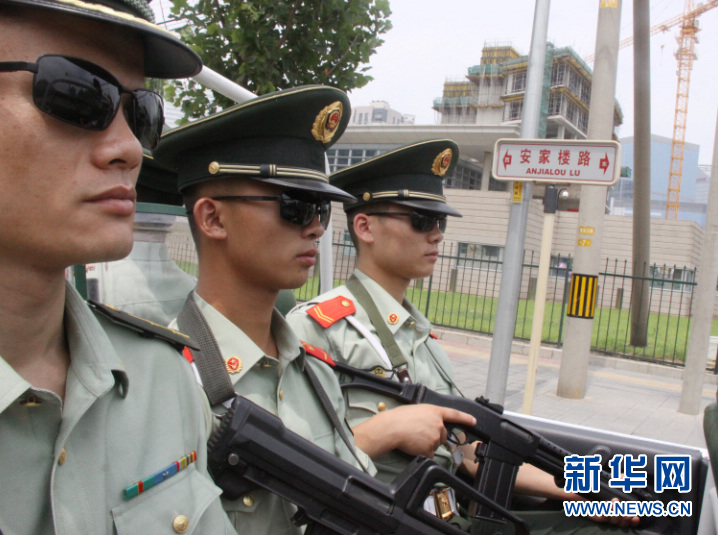 Recently, Beijing Armed Police have deployed armed patrols to maintain stability in the capital. Carrying guns with live ammunition and wearing bulletproof helmets and bulletproof vests, soldiers of the armed police force patrol important places including the Silk Alley, Taikoo Li Sanlitun, Liangmaqiao Road. (Xinhua News Agency/Zheng Guangao)