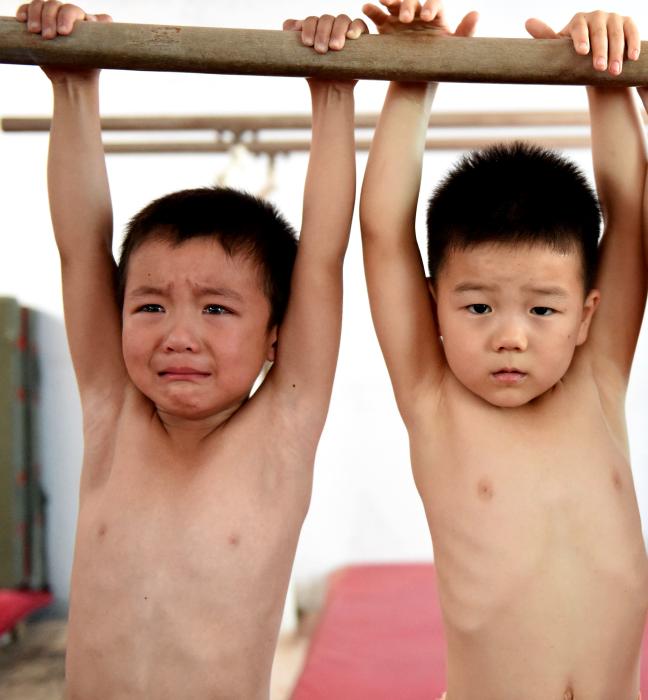 Children receive training under the guidance of the coach during the summer vacation in Bozhou City, east China's Anhui Province, July 9, 2013. Some parents sent their children to receive gymnastics training in summer, hoping that the children will have a better physical condition and a rich vacation life. (Photo/CNS)