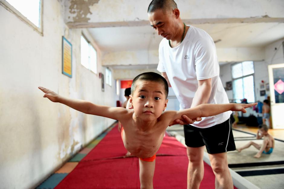 Children receive training under the guidance of the coach during the summer vacation in Bozhou City, east China's Anhui Province, July 9, 2013. Some parents sent their children to receive gymnastics training in summer, hoping that the children will have a better physical condition and a rich vacation life. (Photo/CNS)