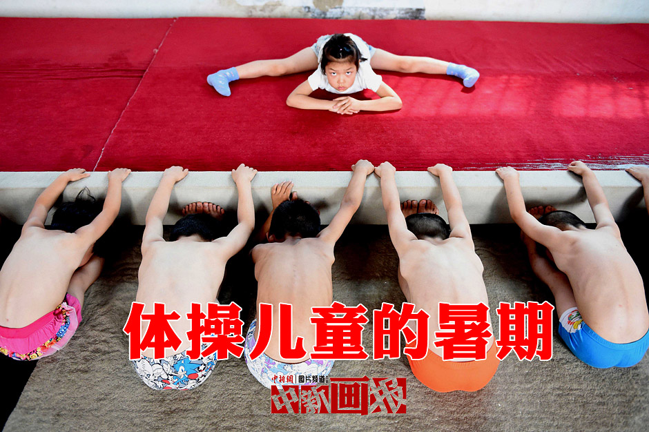 Children receive training under the guidance of the coach during the summer vacation in Bozhou City, east China's Anhui Province, July 9, 2013. Some parents sent their children to receive gymnastics training in summer, hoping that the children will have a better physical condition and a rich vacation life. (Photo/CNS)