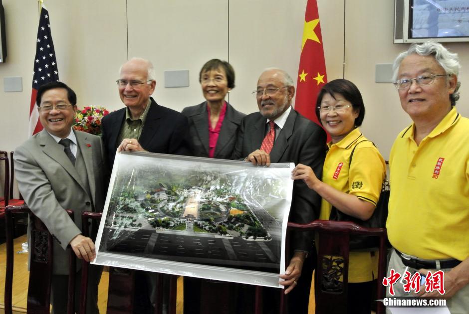 | The Flying Tiger Historical Organization and the Global Alliance for Preserving the History of WW II in Asia present the photos of Flying Tiger Heritage Park in Guilin in San Francisco on July 7, 2014. Yuan Nansheng(first from left), China’s Consul General in San Francisco, held an exhibition and displayed more than 200 relics and documents related to the anti-Japanese war provided by the Chinese-American Association of Collection at the Consulate General’s residence.(Chinanews.com/ Liu Dan) |