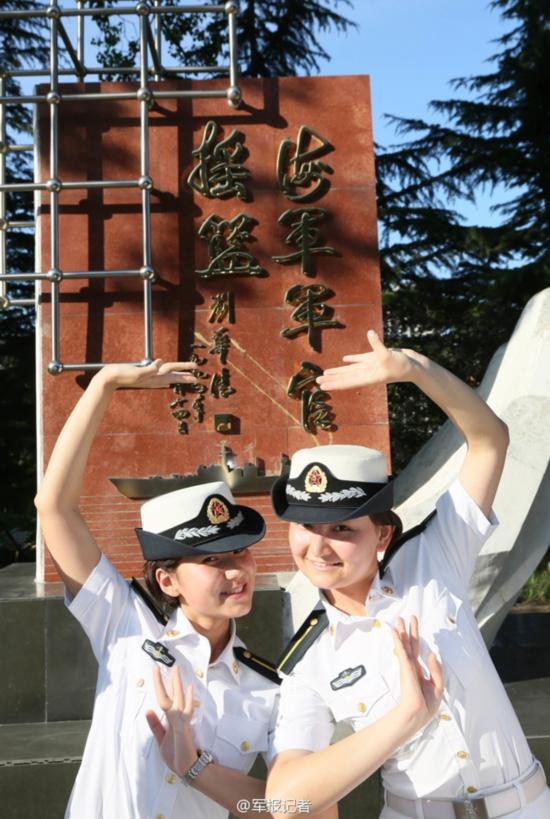 The first three female Uyghur students from Xinjiang Uyghur Autonomous Region have been studying at PLA Dalian Naval Academy for a year until this July. (Photo/Chinamil.com.cn)