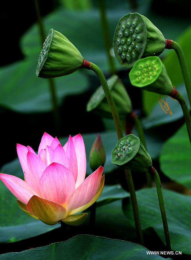 A lotus flower is in full bloom at the Lotus Park in Luoyang, central China's Henan Province, July 13, 2014. (Xinhua/Wang Song)