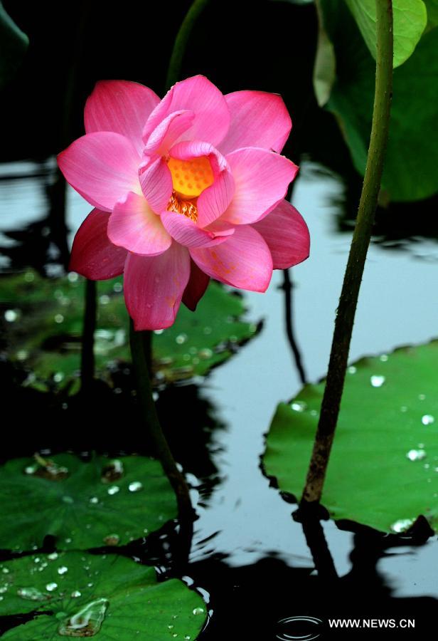 A lotus flower is in full bloom at the Lotus Park in Luoyang, central China's Henan Province, July 12, 2014. (Xinhua/Wang Song)