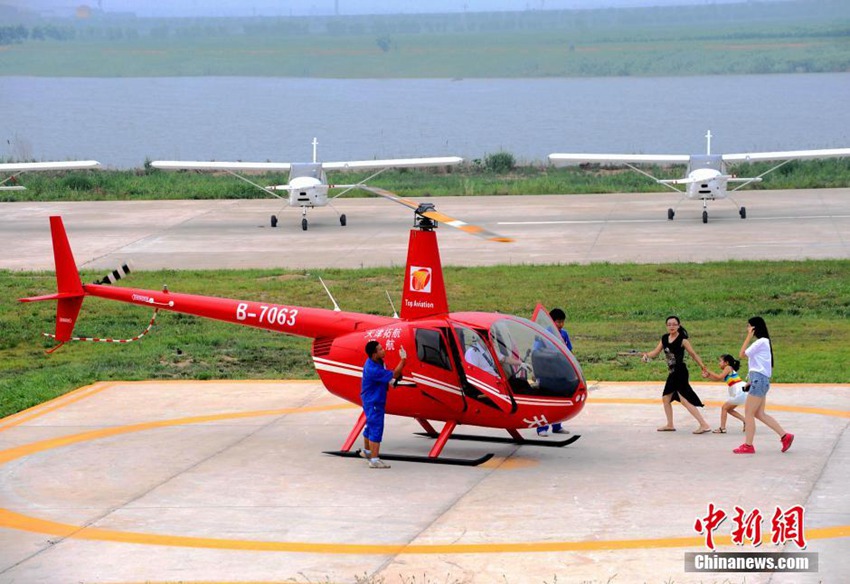 Visitors take a helicopter at Tianjin's first private flying club. (CNS/ Tong Yu)