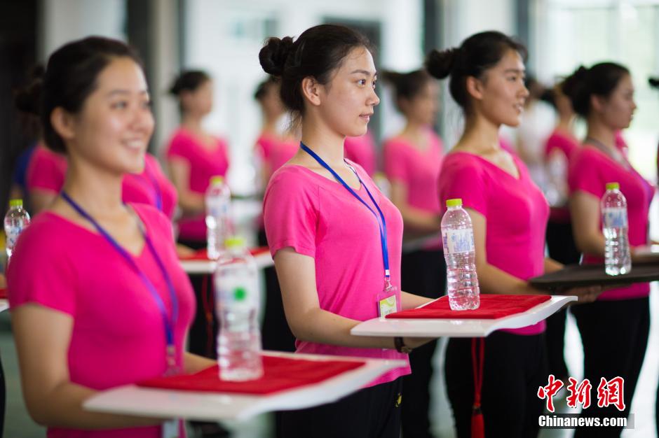 | Volunteers for the 2014 Nanjing Youth Olympic Games receive training on July 13, 2014. On July 13, 491 ceremony volunteers for the 2014 Nanjing Youth Olympic Games make public appearance. All of them are from 18 colleges including Southeast University, Nanjing Agriculture University and Nanjing Sport Institute. (CNS/Yang Bo) |