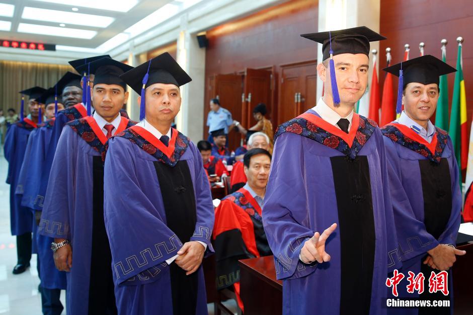 20 foreign military cadets from 16 countries are awarded master’s degree from the PLA Air Force Command College in Beijing July 15, 2014. (Photo/Chinanews.com)