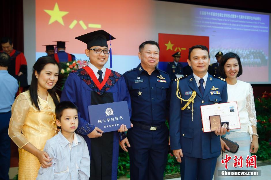 20 foreign military cadets from 16 countries are awarded master’s degree from the PLA Air Force Command College in Beijing July 15, 2014. (Photo/Chinanews.com)