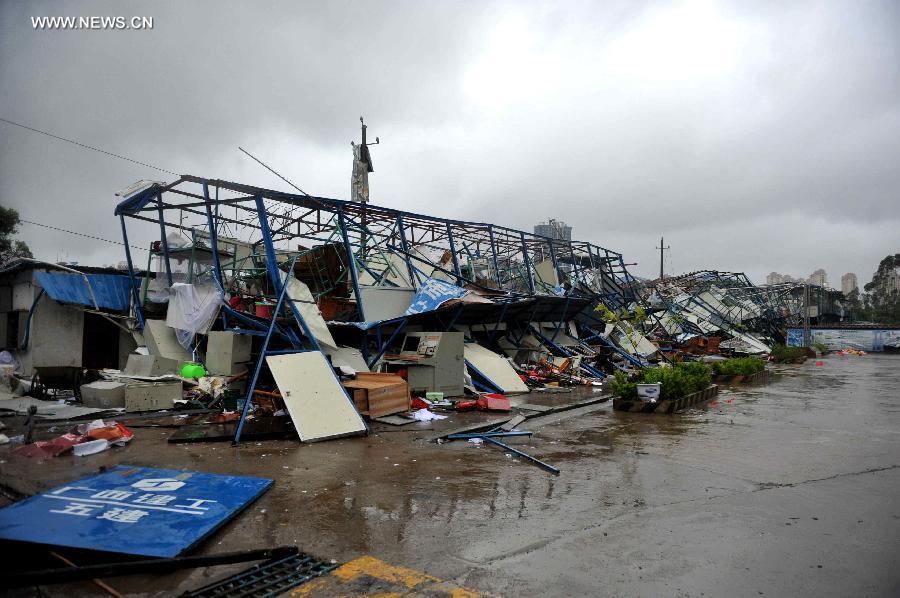 Photo taken on July 19, 2014 shows a construction shed destroyed due to the super typhoon Rammasun in Qinzhou City of Guangxi Zhuang Autonomous Region. Typhoon Rammasun, the ninth in this year and the strongest in decades, made its latest landfall in southwest China's Guangxi at 7:10 a.m. on Saturday and packed gales of up to 48 meters per second, the National Meteorological Center (NMC) said in a statement. (Xinhua/Zhang Ailin)